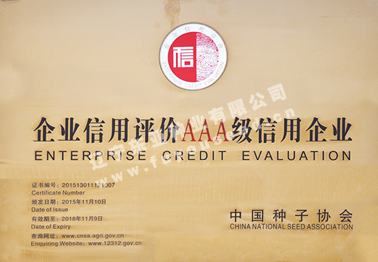 辽宁东亚种业有限公司被评为“AAA级信用企业”