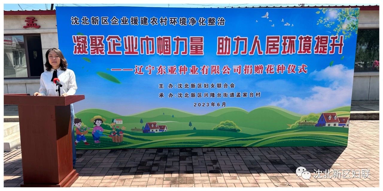 凝聚企业巾帼力量,助力人居环境提升。为深入贯彻落实关于提升农村环境的工作部署和市妇联关于美丽乡村建设的工作要求,2023年6月2日,沈北新区妇联携手辽宁东亚种业有限公司在兴隆台街道孟家台村举办企业捐赠花种仪式,促进农村人居环境质量持续突破、全面提升。